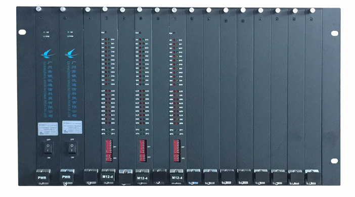 ZMUX-1200 由機箱、電源板和E1倒換板構成。機箱采用標準19英寸6U高、插卡式結構,共有16個板卡插槽,包括2個電源板插槽,14個E1倒換板通用插槽。可選:8進4出 E1倒換板、4進2出 E1倒換板,最大提供56路重要E1信號自動保護功能。