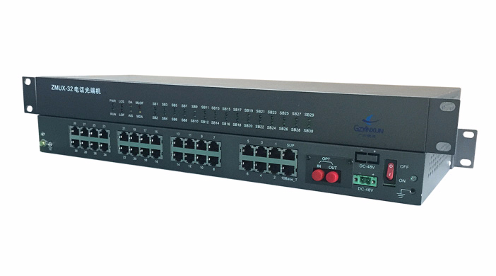 ZMUX-32是一款電話光端機,主要完成電話、4線音頻(E&M)、RS232、網絡等多業務接入,通過復用到1路光信號傳輸,實現多業務信號點對點通信功能。