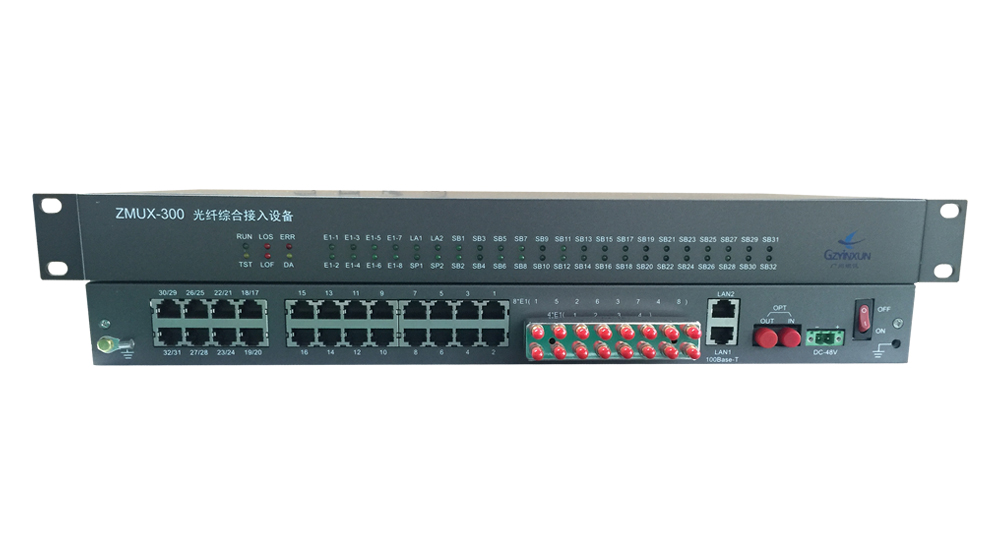 ZMUX-300采用模塊化設計,提供32個通用業務插槽、1個2路共享100M以太網插槽、2個4×E1插槽,可完全按照客戶要求業務及數量裝配設備
